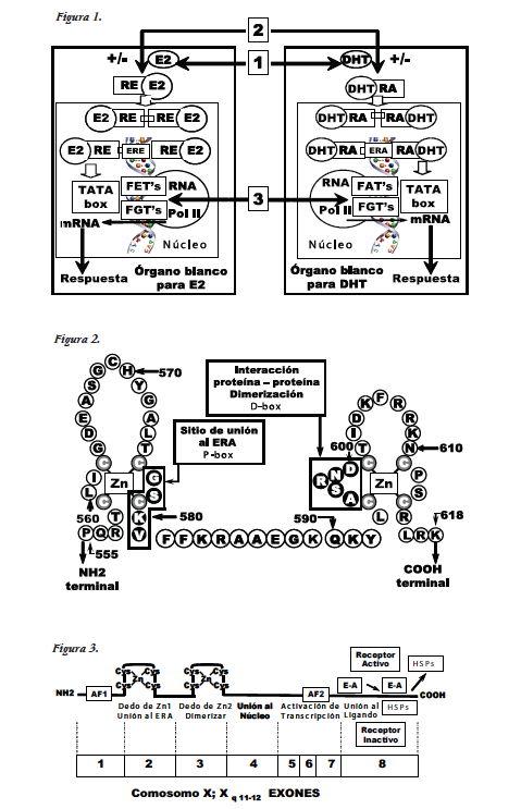activación se produce en el RA por la T y DHT, y en el RE por estradiol; sin
